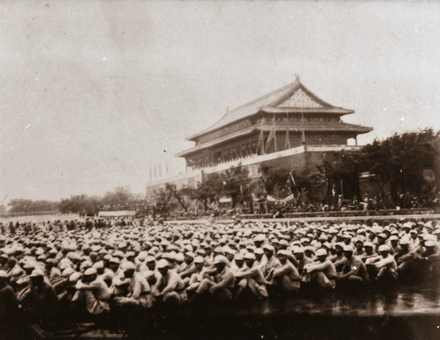 在天安门前静候开国大典的华工学生