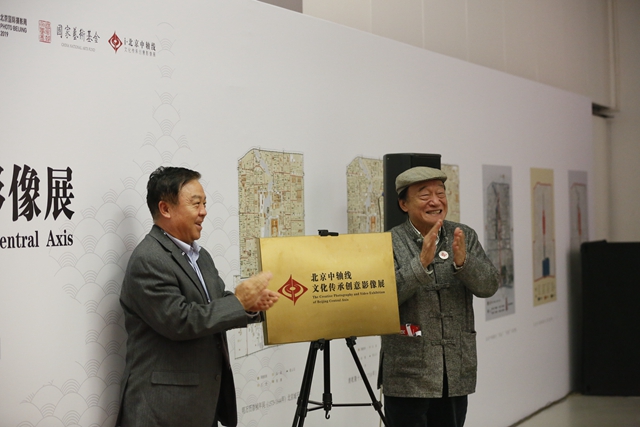 著名摄影家、北京国际摄影周专家顾问委员会总顾问朱宪民与ob真人竞猜原常务副校长杨宾共同为“北京中轴线文化传承创意影像展”揭幕。