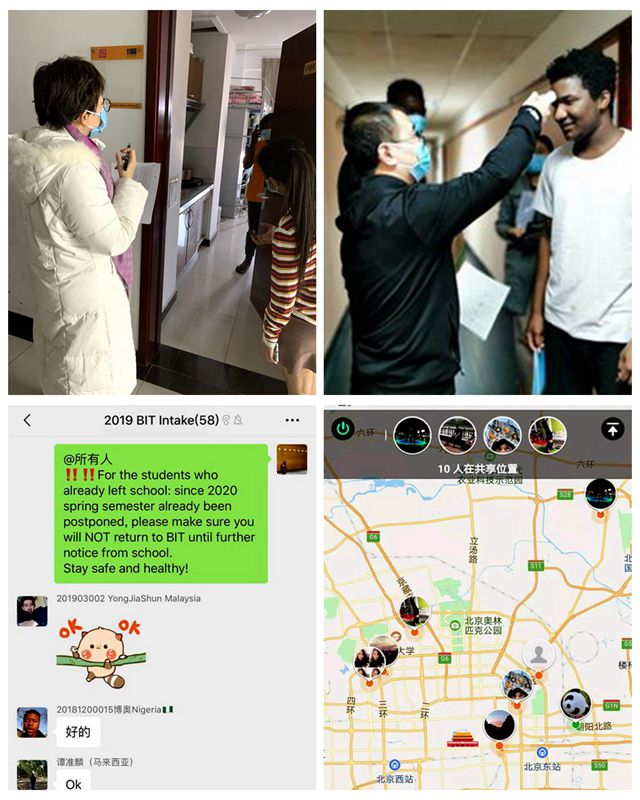 精准掌握数据。1月20日,留学生中心通过全体国际学生辅导员启动了防控基础数据统计和学生情况摸排工作,当晚完成基本数据采集工作。随后,按照校内住宿、校外租房、其他城市、离境回国等情况严格实行每日不间断数据统计,每天统计量超过600人次。同时,还采取不同方式,重点加强动态信息掌握,切实做好每日数据的更新核对工作。每日按国家留学基金管理委员会、北京市教委、房山公安分局出入境管理大队等单位和学校要求及时报送相关数据。