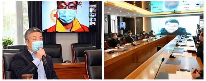 随后,赵长禄、张军与全国模范教师、机械学院教师薛庆和身处武汉、坚持开展线上教学的机电学院教师陈学超进行了视频连线,了解了他们线上教学的准备情况,并特别慰问了陈学超老师的生活和健康情况,嘱咐他和家人做好居家防护,保持良好的健康状态。