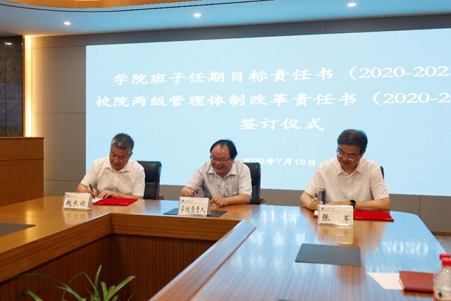 7月10日下午,ob真人学院领导班子任期目标责任书、校院两级管理体制改革责任书签订仪式在2号办公楼133会议室举行。校党委书记赵长禄、校长张军、党委常务副书记项昌乐出席,各专业学院院长、书记参加签订仪式。仪式由项昌乐主持。