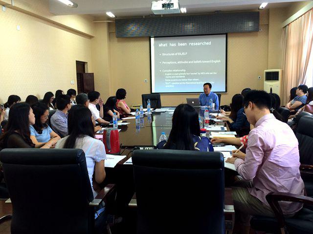 8月28日,第八场学术讲座在外国语学院举行。讲座由外国语学院协办,邀请了伦敦大学学院教育系语言中心主任、知名教授李嵬院士作了系列讲座,主题分别为“English LanguageTeaching (ELT) in the era of globalization(全球化背景下的英语语言教学)”和”Early Acquisition of English as a second language(英语作为第二语言的早期习得)”的报告。李嵬教授在“English LanguageTeaching (ELT) in the era of globalization(全球化背景下的英语语言教学)”的讲座中为我们讲解了全球化进程对英语语言教学的影响以及在此背景下英语教学和研究的关键点,还介绍了他提出的 “translanguage” 的概念和相关研究。在”Early Acquisition of English as a second language(英语作为第二语言的早期习得)”的讲座中李嵬教授通过研究实例讲解了儿童习得第二语言的历史、研究现状和未来发展方向等内容。讲座内容代表语言学跨学科研究取得的最新进展,同时和大家的外语学习密切相关,讲座中李嵬教授举出了一些实际案例使得整个讲座生动有趣。